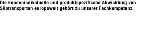 Unsere eingesetzten Silofahrzeuge und Silocontainer sind speziell auf die Bedürfnisse der Kunden konfiguriert. Sicherheitsorientierung und Energieeffizienz sind wesentliche Merkmale bei der Abstimmung unserer Transportlösungen.